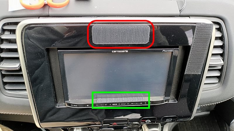 カーナビの出っ張り部分に、細くしたマジックテープ、