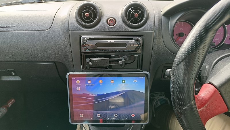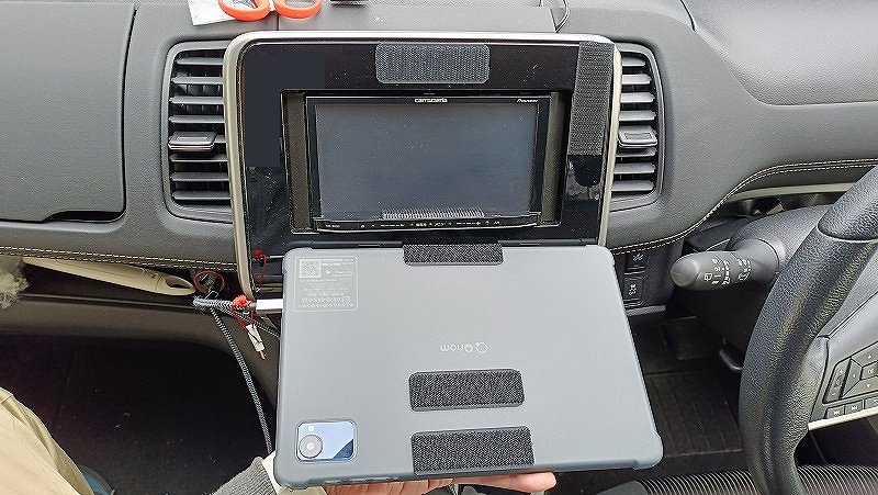 下側をナビの出っ張りに置きつつ、パネルによりかからせる感じで置けば…