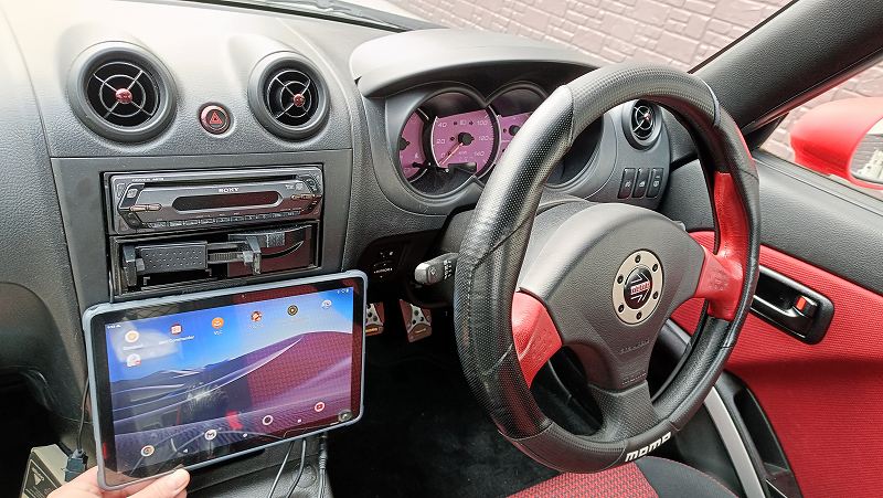 充電用のUSBにシガーライター充電器から給電すれば、接続完了です。