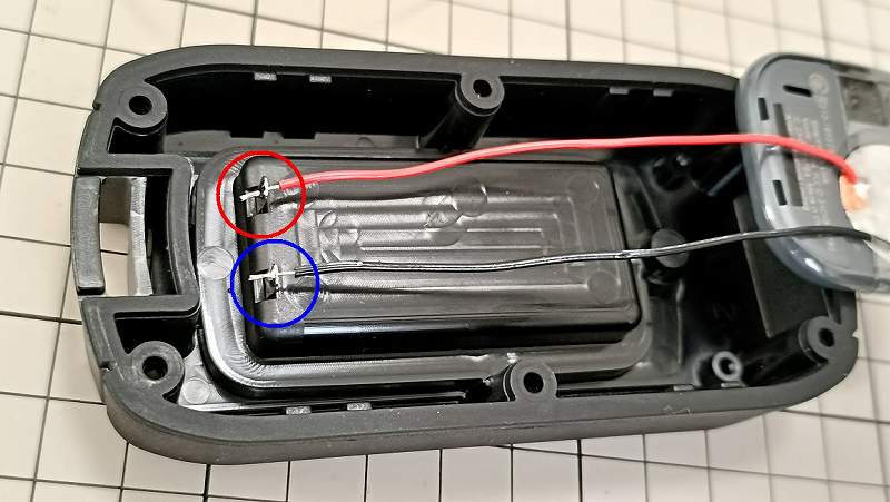 赤が+プラス側 (コイン電池の側面~型番が刻印されている側)