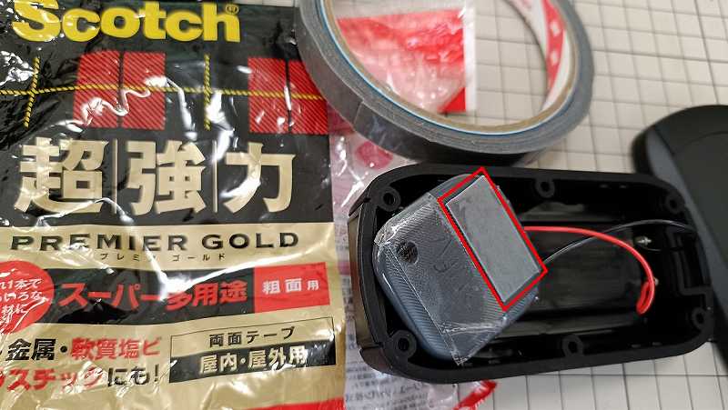 トラッカー本体の固定は、いつも信頼して使っている3M製両面テープで。